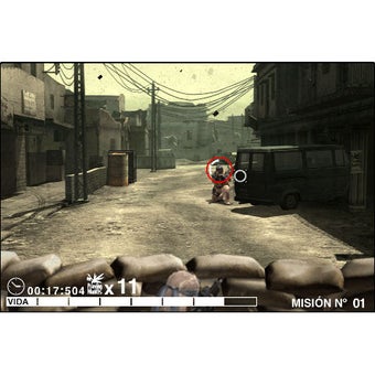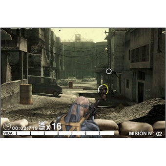 Arrastrando el dedo, mueves el visor (puedes tocar en cualquier parte de la pantalla, para no tapar la perspectiva). Para disparar, pulsa sobre la pantalla. Si los enemigos están más lejos, puedes utilizar el rifle de francotirador.